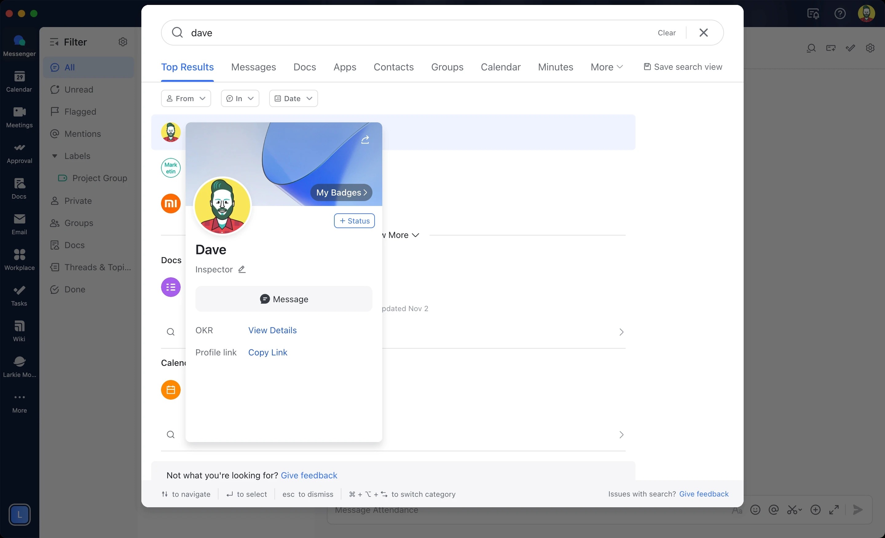 Tính năng liên hệ của Lark giúp người dùng tại Xiaomi dễ dàng tìm thấy và kết nối với các bên liên quan trong tổ chức, đồng thời tổ chức các cuộc trò chuyện có liên quan theo chuỗi.