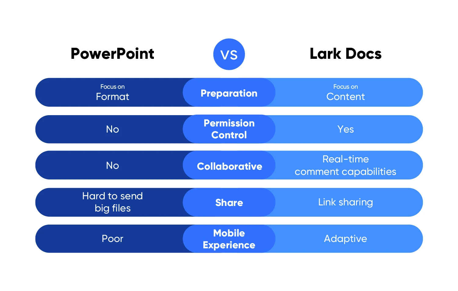 Rất nhiều cuộc họp không hiệu quả như vậy có thể cản trở sự đổi mới, góp phần khiến nhân viên kiệt sức và thậm chí tăng tỷ lệ nghỉ việc của nhân viên. Để giải quyết vấn đề này, Xiaomi đã sử dụng Lark Docs để hợp lý hóa các cuộc họp và cải thiện năng suất. "