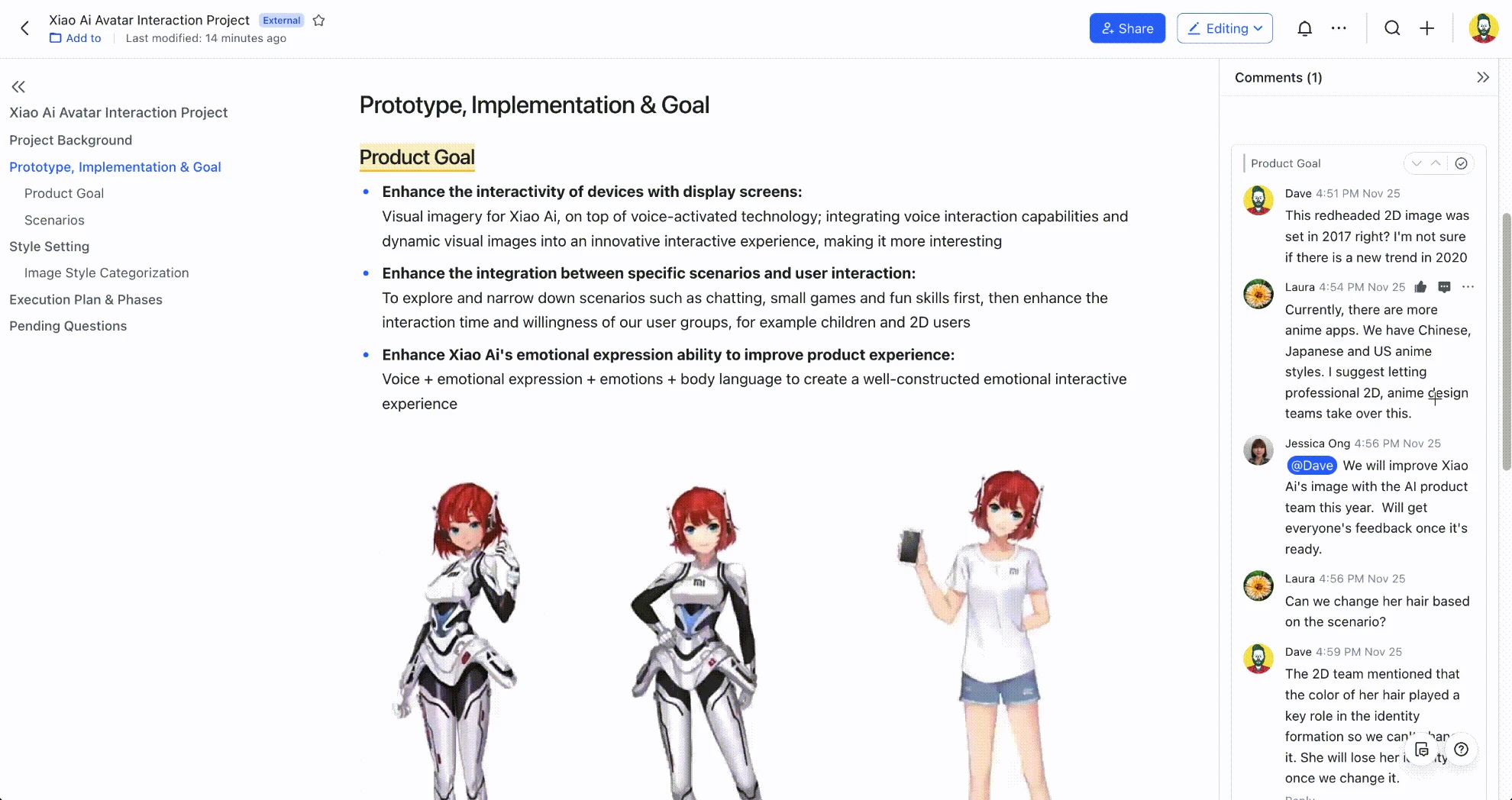 Sử dụng phương pháp SamePage Meeting của Lark, Xiaomi đã tiến hành một brainstorm với 90 người để tạo hình đại diện mới cho trợ lý kỹ thuật số AI của họ, Xiao Ai. Kết quả? 200 nhận xét trong một cuộc họp kéo dài một giờ, với hơn năm nhóm chủ đề được tạo sau đó.
