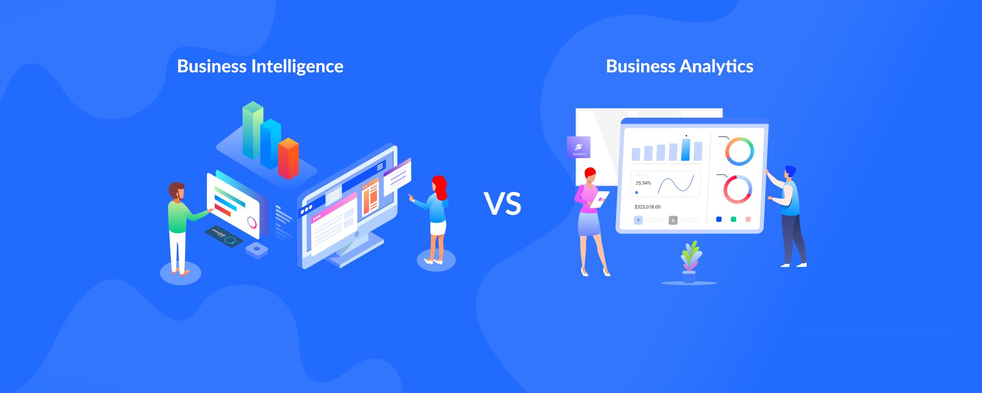 Business intelligence tập trung vào phân tích mô tả, thu thập dữ liệu, lưu trữ dữ liệu, quản lý kiến thức và phân tích dữ liệu để đánh giá dữ liệu kinh doanh quá khứ và hiểu rõ thông tin hiện tại đã biết. Trong khi Business intelligence nghiên cứu dữ liệu lịch sử để hỗ trợ ra quyết định kinh doanh, business analytics liên quan đến tương lai. Business analytics sử dụng khai thác dữ liệu, mô hình dữ liệu và machine learing để trả lời câu hỏi tại sao một điều gì đó xảy ra và dự đoán điều gì có thể xảy ra trong tương lai.