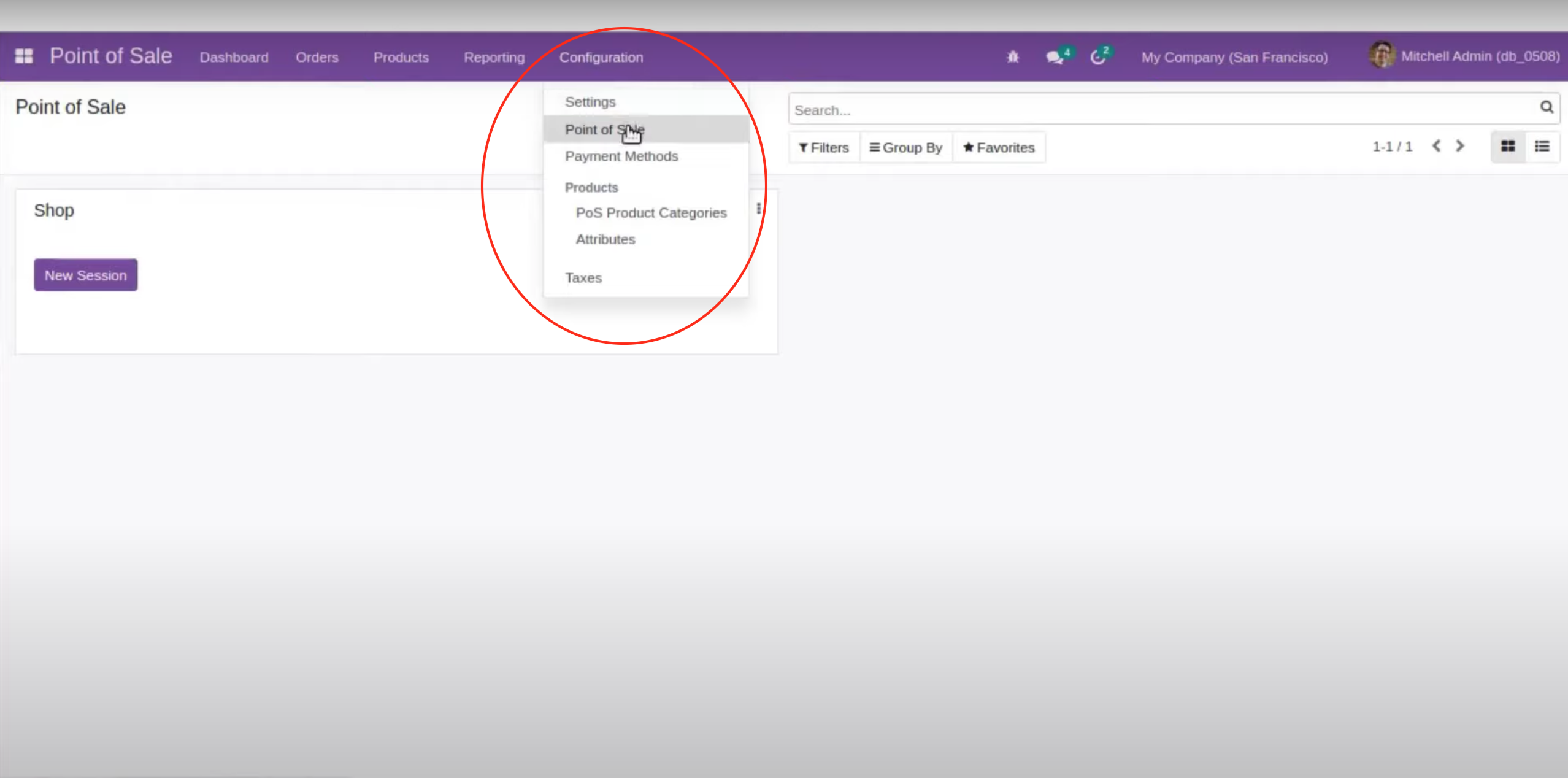 Trước tiên tất nhiên bạn cần truy cập vào mô-đun POS để bắt đầu tiến hành cài đặt của mình. Sau đó bạn vào mục Cài đặt -> Point of Sale như hình mô tả bên dưới: