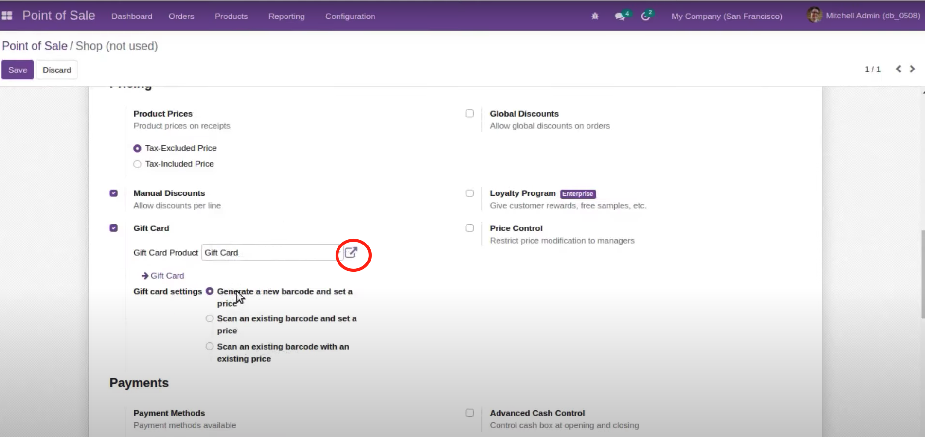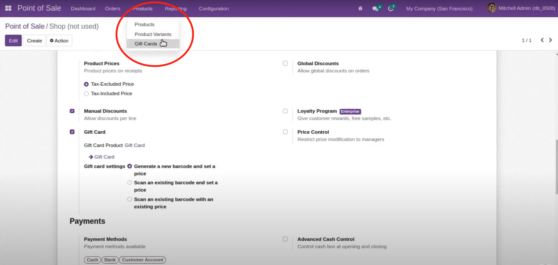 Hướng dẫn cấu hình thẻ quà tặng trong POS Odoo 15