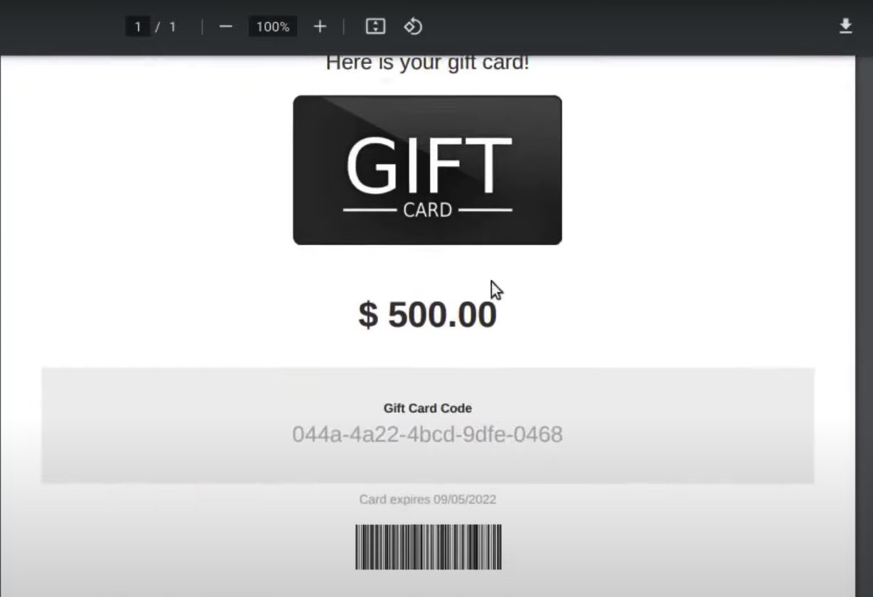 Sau khi bấm vào Creat (tạo) ở góc trái màn hình, một cửa sổ mới sẽ hiện ra để bạn có thể tùy chọn ngày hết hạn của thẻ quà tặng, trị giá của thẻ quà tặng...