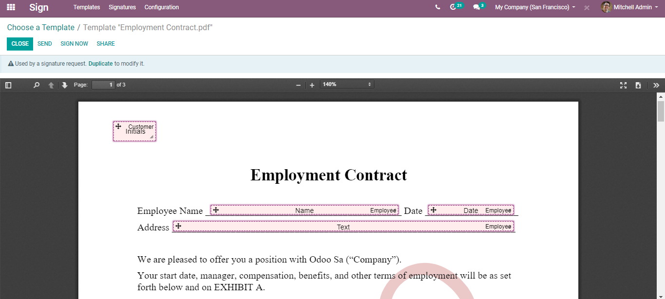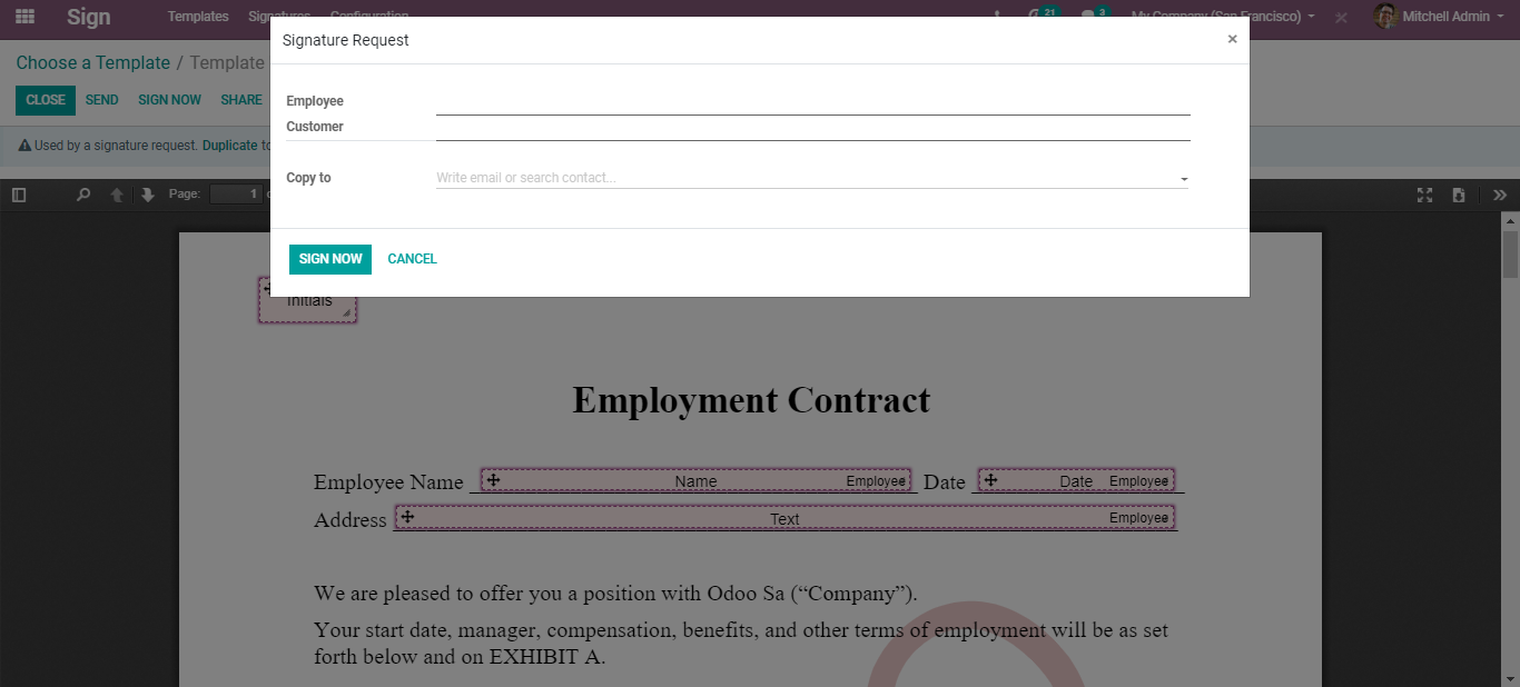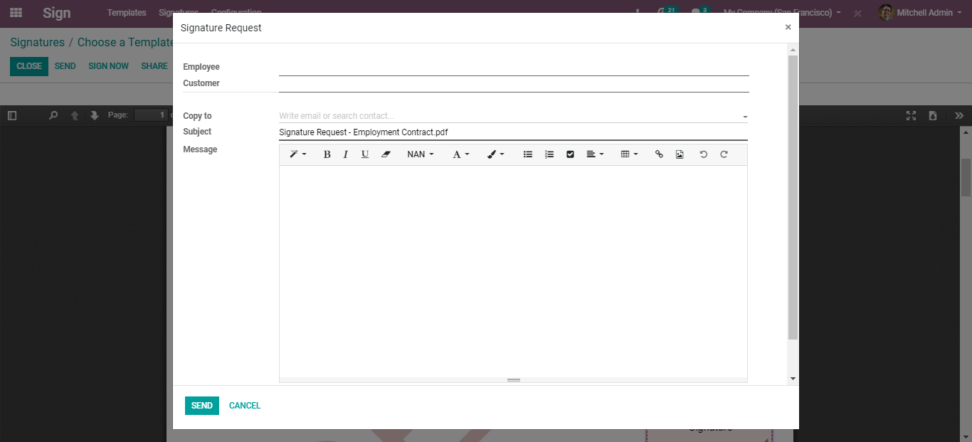 Bạn có thể thấy một mẫu thư yêu cầu chữ ký. Bạn có thể thêm vào đây nhân viên và khách hàng có chữ ký được yêu cầu và cả tin nhắn.