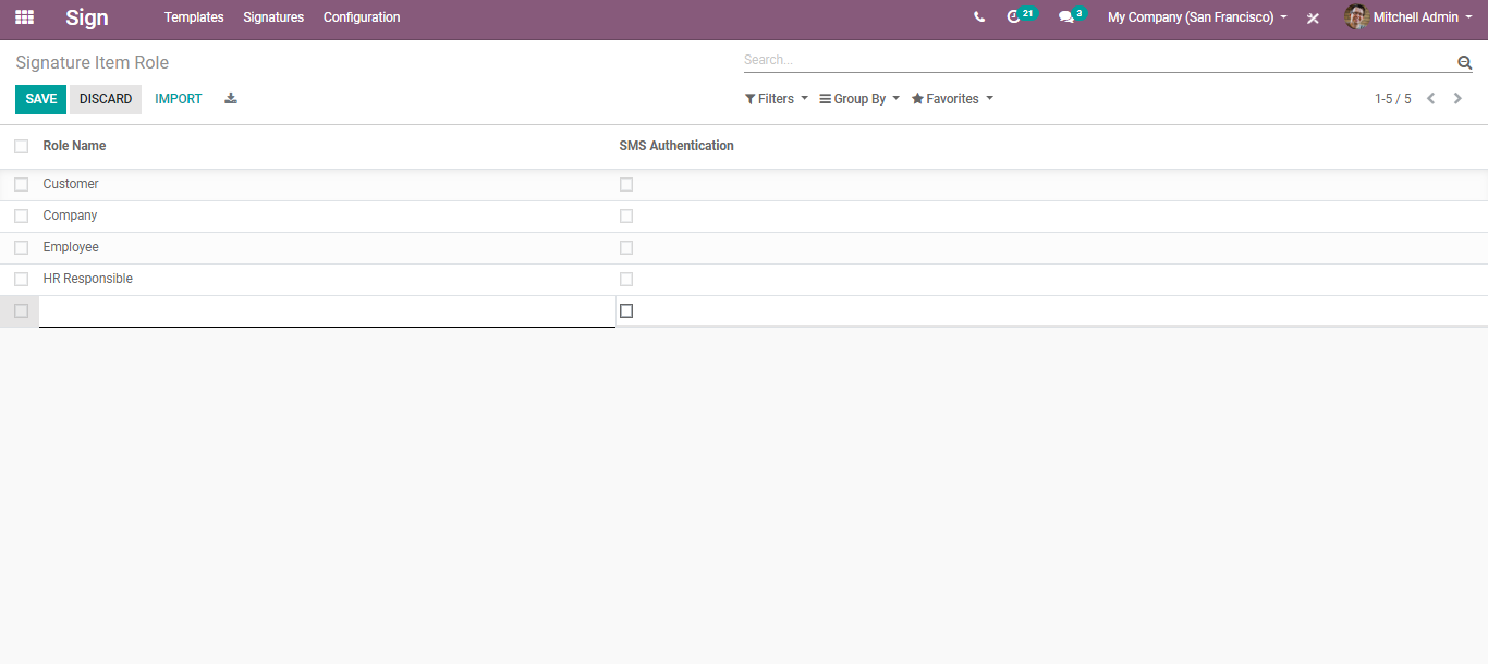 Trước khi yêu cầu chữ ký trên tài liệu của bạn, rất cần thiết để định cấu hình các vai trò tức là chữ ký bạn cần trong tài liệu. Đối với điều đó, đi đến Đăng nhập> Cấu hình> Vai trò.