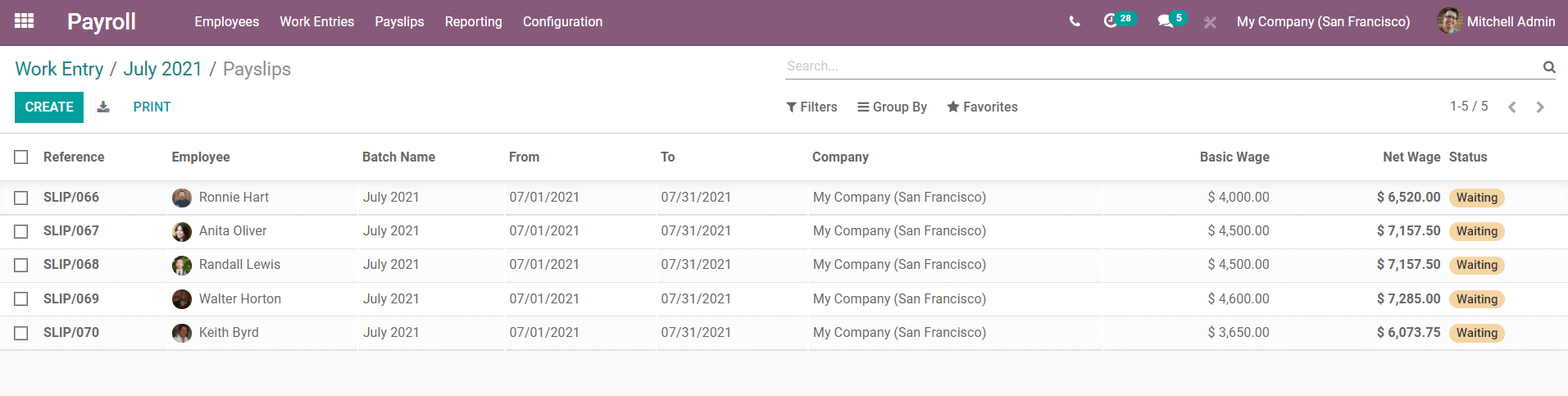 Đây là cách Odoo giúp tính toán mức lương của từng nhân viên dựa trên cấu trúc tiền lương được chọn trong hợp đồng nhân viên, quản lý phiếu lương của nhân viên và tạo hồ sơ về mỗi khoản thanh toán.