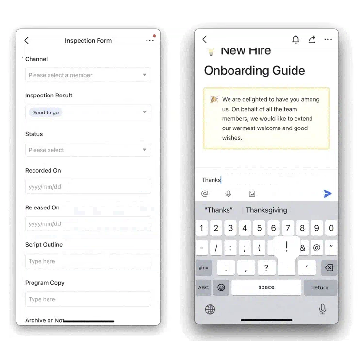 Một trong những lợi thế mà Lark mang lại là tập trung vào tính năng di động, giúp đội ngũ trực tiếp dễ dàng kết nối khi di chuyển và phù hợp với các doanh nghiệp có đội ngũ lao động tại hiện trường như cửa hàng bán lẻ, công trường xây dựng hoặc nhà kho. Khác với Slack, được thiết kế chủ yếu cho sử dụng trên máy tính để bàn, Lark cung cấp một ứng dụng di động, nơi các hoạt động như nộp báo cáo, phê duyệt và cộng tác tài liệu có thể được thực hiện ngay trên đầu ngón tay. Giao diện cũng tự động điều chỉnh cho phù hợp với màn hình nhỏ.