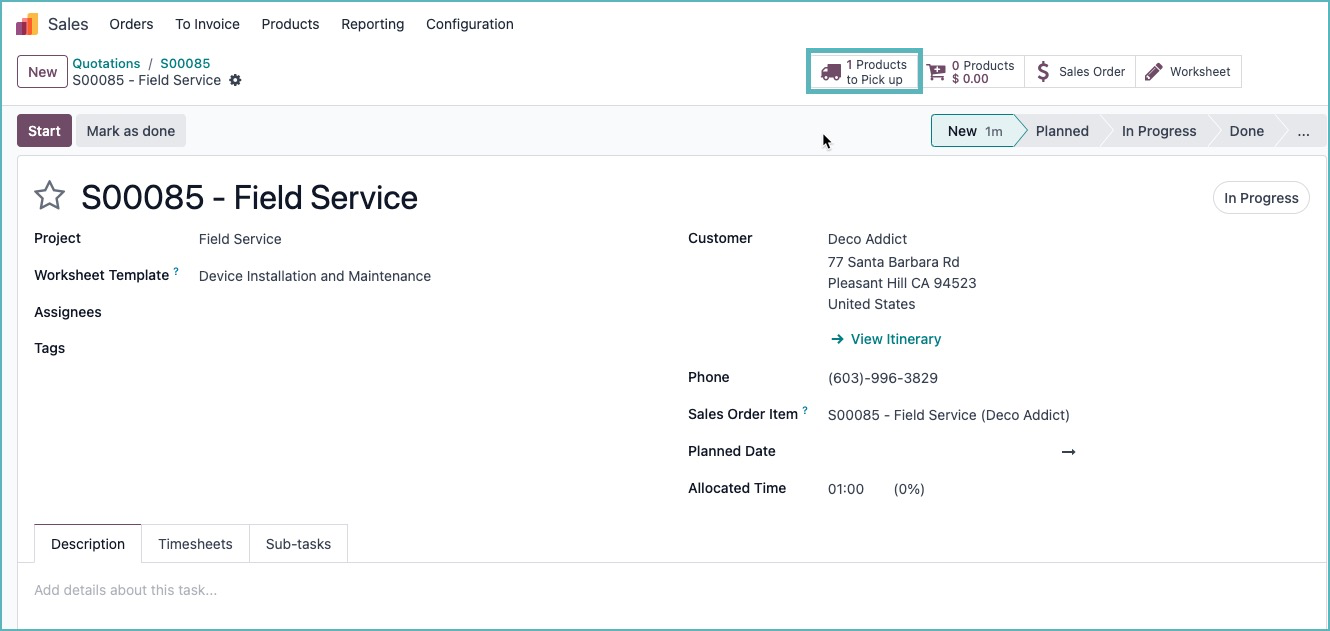 Trong Odoo 18, bạn có thể bao gồm các sản phẩm dưới bảo hành trong các nhiệm vụ dịch vụ tại hiện trường. Khi tính năng này được kích hoạt cho một nhiệm vụ, giá bán của sản phẩm tương ứng sẽ tự động đặt về không, cho biết sản phẩm đó đang được bảo hành. Điều này giúp đơn giản hóa quản lý dịch vụ bảo hành trực tiếp qua mô-đun, cải thiện dịch vụ và sự hài lòng của khách hàng.
