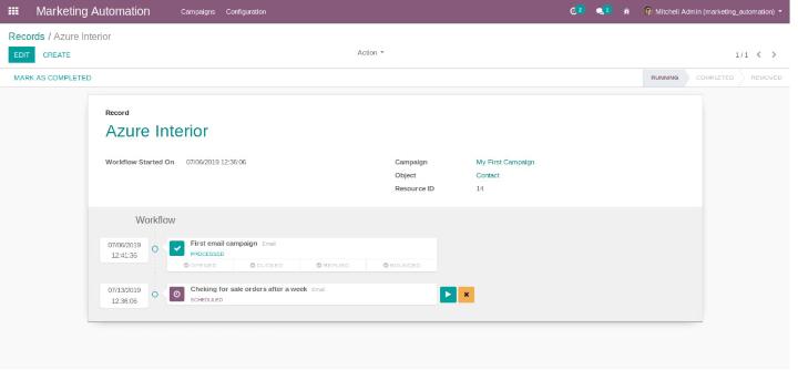 Chúng ta có thể thấy rằng các hoạt động được lên kế hoạch cho người tham gia này. Nếu muốn chạy hoạt động ngay lập tức cho người tham gia này, nhấp vào nút phát của hoạt động được yêu cầu.
