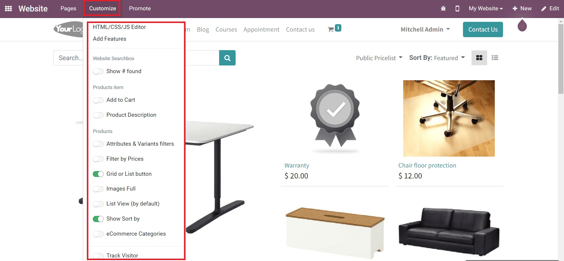 Với sự trợ giúp của mô-đun này, bạn sẽ có thể thiết lập một cửa hàng trực tuyến hiện đại và hoàn chỉnh trong một thời gian ngắn. Odoo Website Builder cho bạn biết về một số đặc điểm của nó: