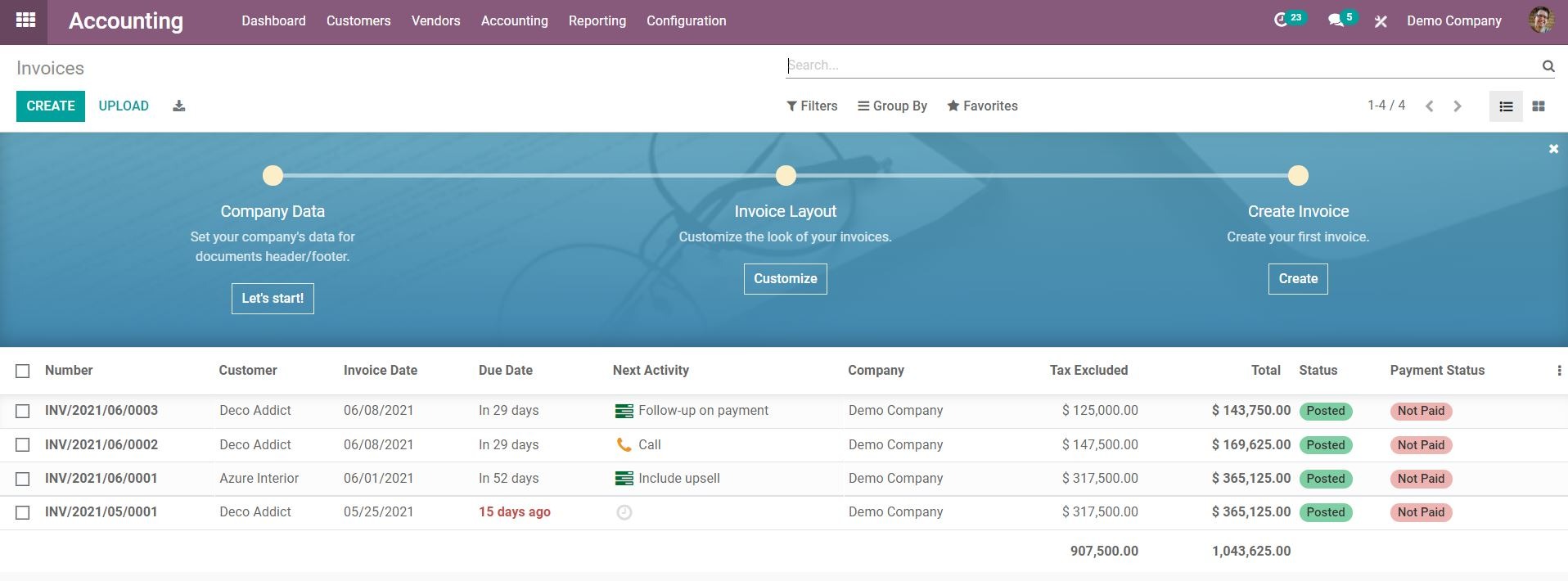 Odoo Accounting trang bị các tính năng giúp doanh nghiệp quản lý tài chính và kế toán tổng thể. Bao gồm: lập báo cáo tài chính, quản lý thu chi, tiền lương, thuế...
