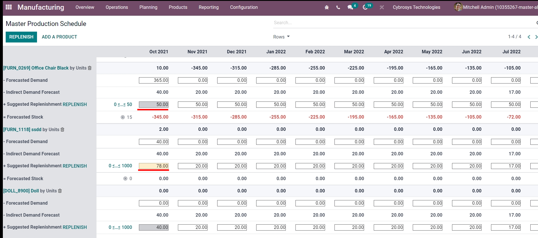 Bằng cách sử dụng MPS, bạn có thể tăng hoặc giảm dự báo về nhu cầu dựa trên các yêu cầu. Ô sẽ chuyển sang màu cam khi bị đánh giá thấp, cho thấy rằng lượng bổ sung tổng thể bị ảnh hưởng. Bây giờ bạn chỉ cần khởi chạy một đơn đặt hàng mới.