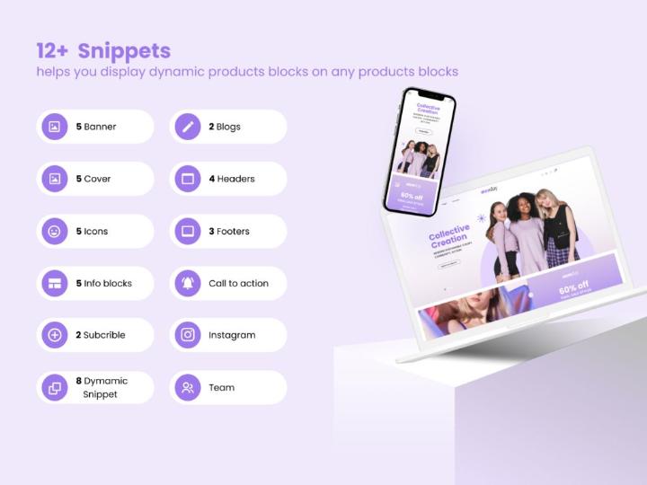 Có thiết kế tối giản, hiện đại với hơn 5 bố cục trang chủ và rất nhiều tùy chọn cho bố cục cửa hàng, blog, portfolio, công cụ định vị cửa hàng và các trang hữu ích khác. HiMonday sẽ đáp ứng và phù hợp với bất kỳ loại trang web Thương mại điện tử nào.