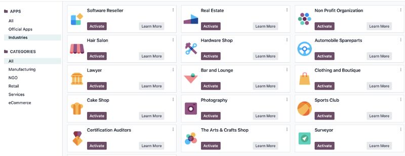 Một cập nhật mà tôi đánh giá cao nhất trong Odoo 17 chính là việc cho phép người dùng chọn lựa lĩnh vực kinh doanh trong quá trình thiết lập ban đầu. Phiên bản Odoo 17 giới thiệu các quy trình được cấu hình sẵn, đặc biệt cho từng ngành, phù hợp với nhu cầu đặc thù của từng lĩnh vực. Điều này có nghĩa là quá trình triển khai suôn sẻ hơn, hiệu quả tăng lên và trải nghiệm phù hợp hơn cho các doanh nghiệp trên mọi lĩnh vực.