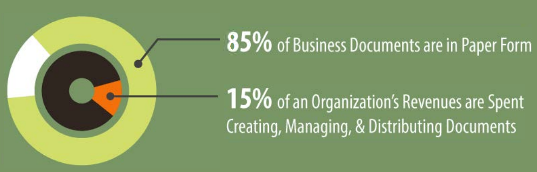Trung bình, các tổ chức sử dụng 15% doanh thu để thực hiện các việc liên quan đến tạo, quản lý và phân phối tài liệu. Nhân viên văn phòng trung bình sử dụng 10.000 tờ giấy mỗi năm. Và trên hết, 45% lượng giấy in trong các văn phòng sẽ bị bỏ vào thùng rác vào cuối ngày.