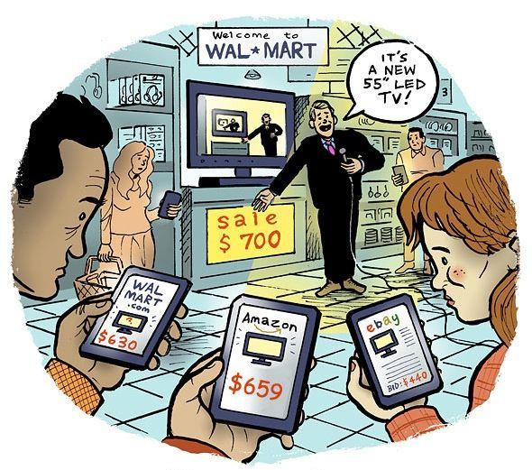 Theo một nghiên cứu Nhận thức về Bán lẻ, gần 9/10 người tiêu dùng (88%) so sánh giá trực tuyến giữa các cửa hàng khác nhau trước khi đưa ra quyết định mua hàng. Định nghĩa về trưng bày ngược có thể là: khách hàng đến một cơ sở kinh doanh thực tế để mua các sản phẩm và dịch vụ mà họ đã gặp trên Internet.