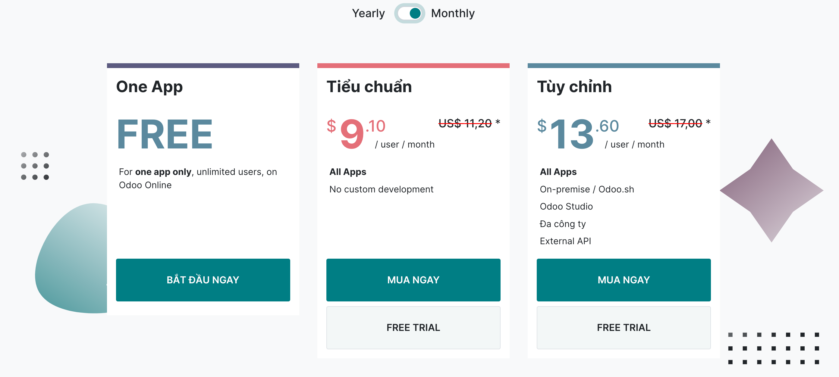 Trước đây, phí license của Odoo tại Việt Nam được chia thành 2 loại gồm: