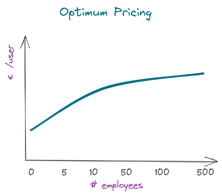 Một công ty nhỏ có thể đủ khả năng quản lý hầu hết hoạt động kinh doanh của mình với ít tổ chức dữ liệu hơn và ít ứng dụng hơn. Ngược lại, một công ty lớn không thể duy trì sự phát triển và tồn tại nếu không có sự tối ưu hóa kỹ thuật số và tích hợp hoàn hảo các ứng dụng. Nói cách khác: một chiến lược giá tối ưu sẽ là tăng giá theo số lượng người dùng.