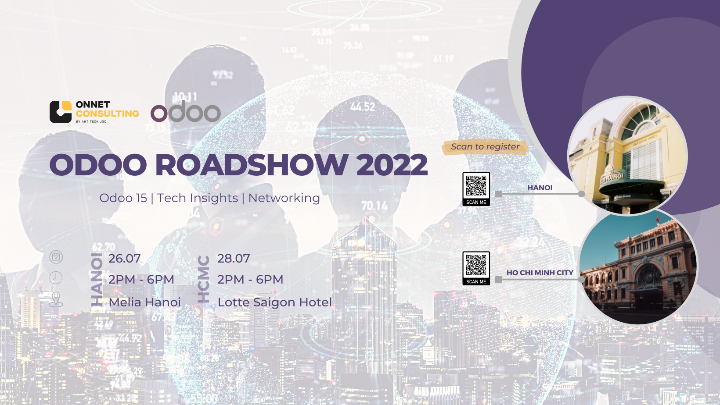 Sau hai năm bị gián đoạn vì đại dịch, năm nay Odoo Roadshow sẽ trở lại Việt Nam với hai sự hiện được tổ chức tại Hà Nội và TP Hồ Chí Minh .