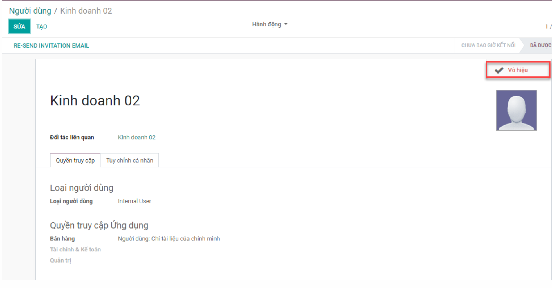 Bước 4: Bấm Vô hiệu để hủy người sử dụng